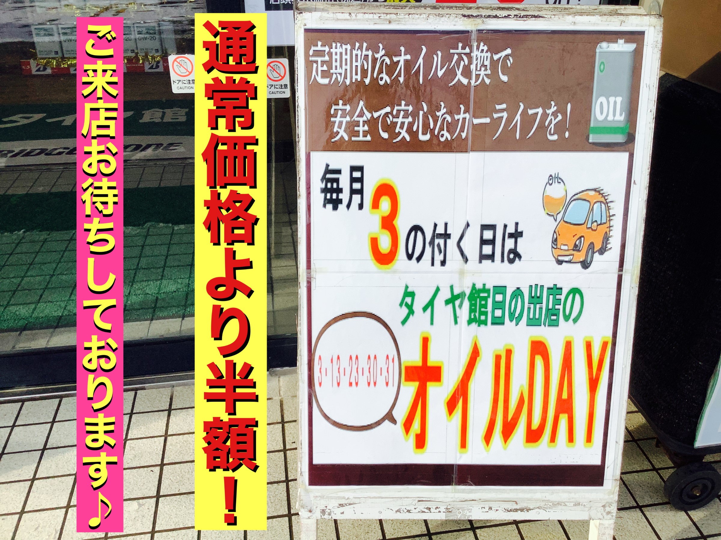 本日【毎月3のつく日オイルデー】です! ~タイヤ交換などの予約WEBでできます!~