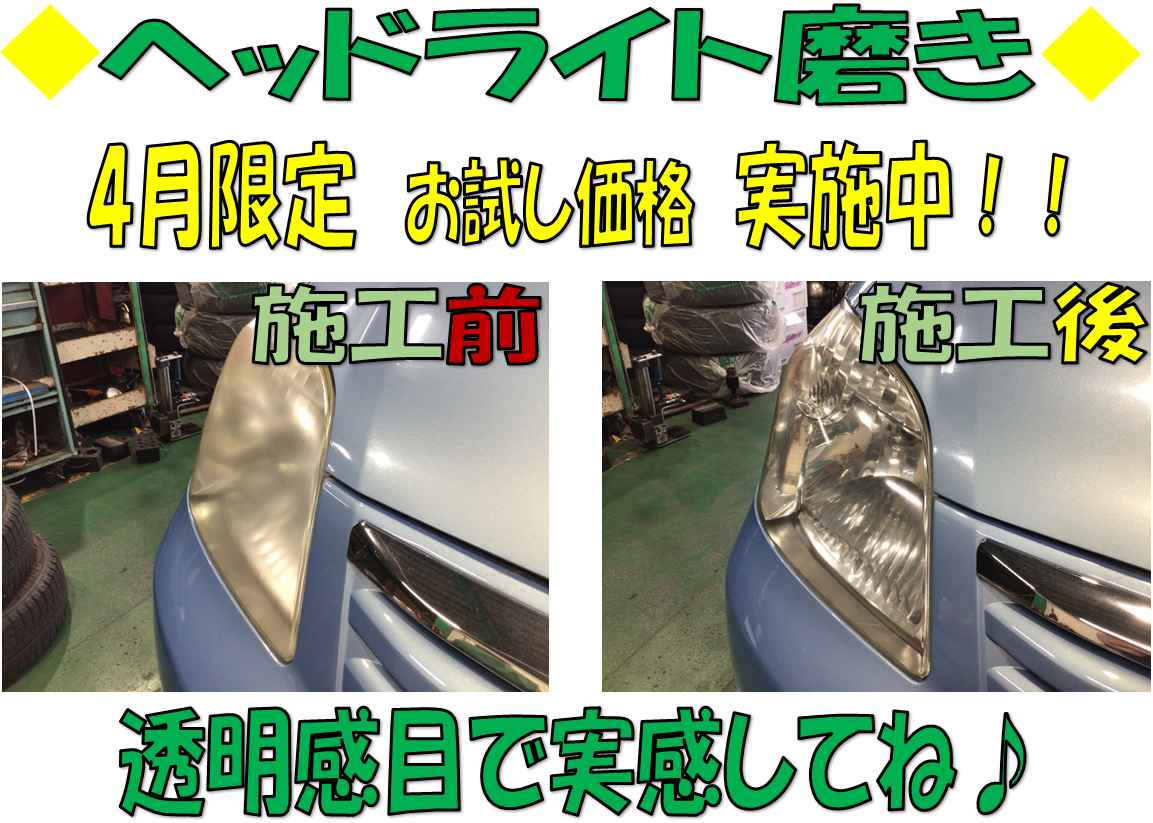 只今当店では期間限定お試し価格・ヘッドライト磨きを実施中です!