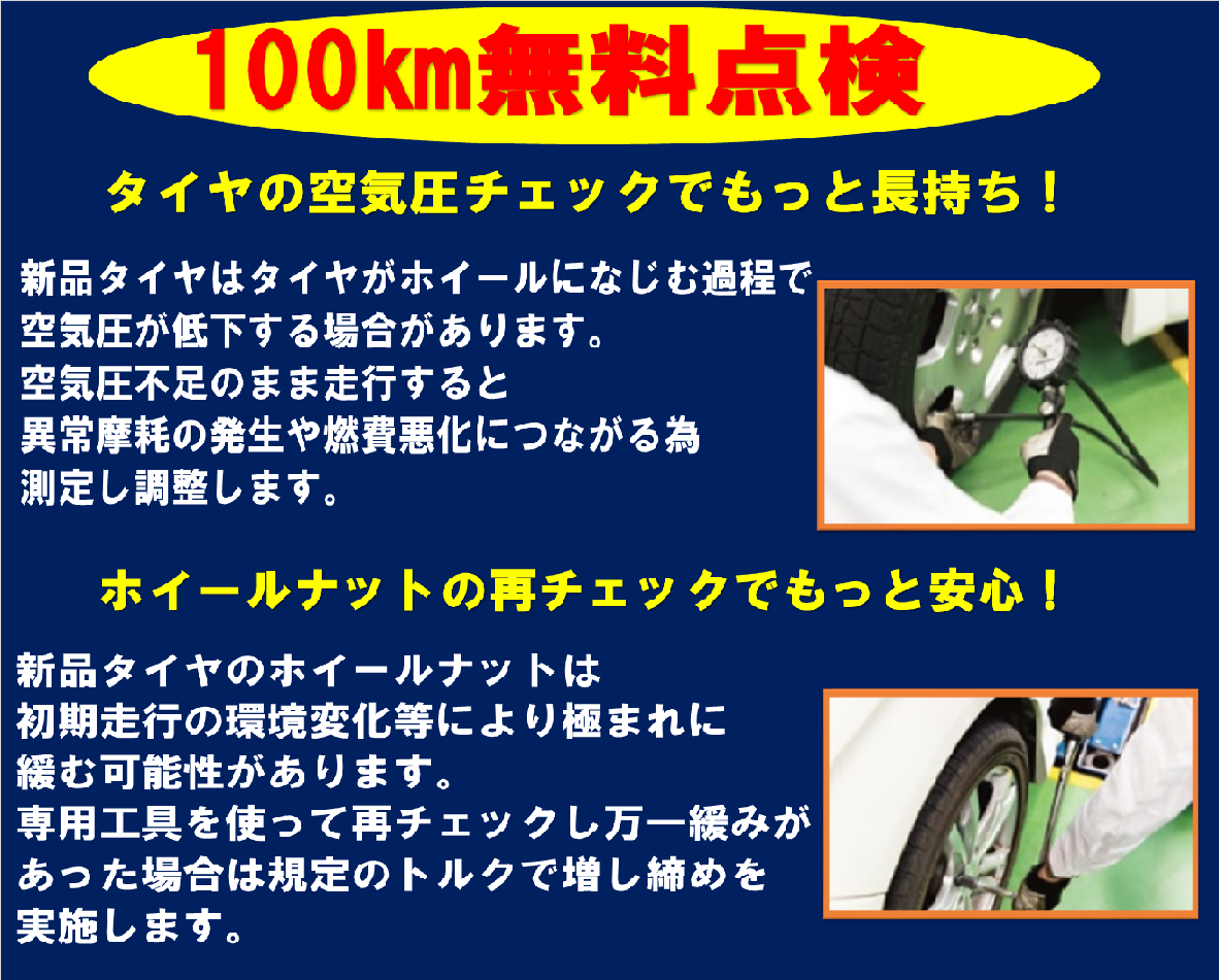 安全・安心・快適にお車をご利用していただく為にも「100㎞点検」へ