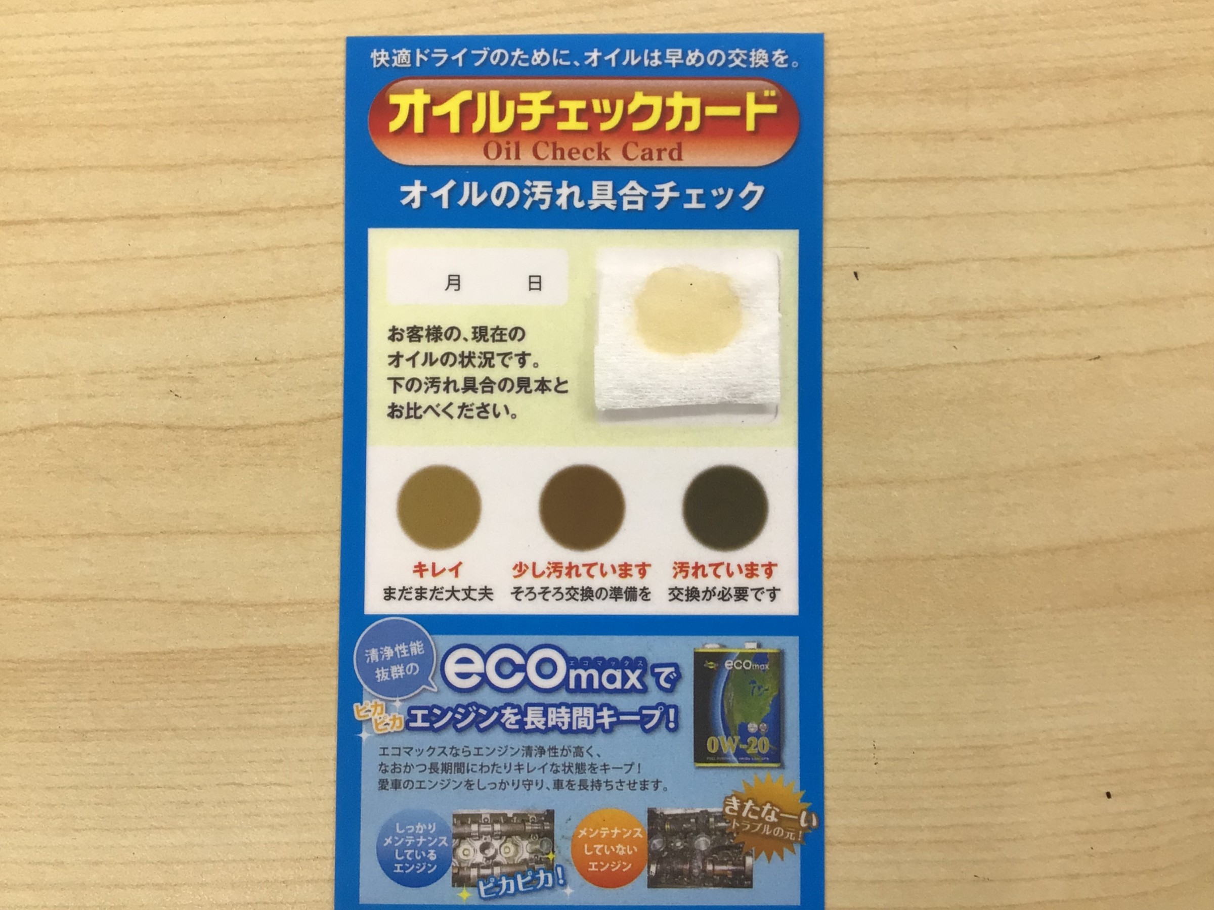 当店ではオイルの交換が必要・不要でも無料点検時にオイルチェックシートで