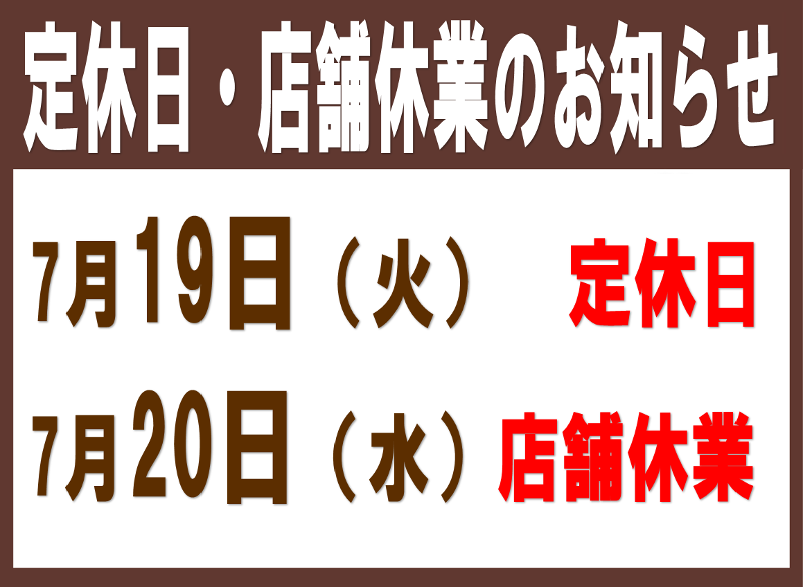 【定休日・店舗休業のお知らせ】