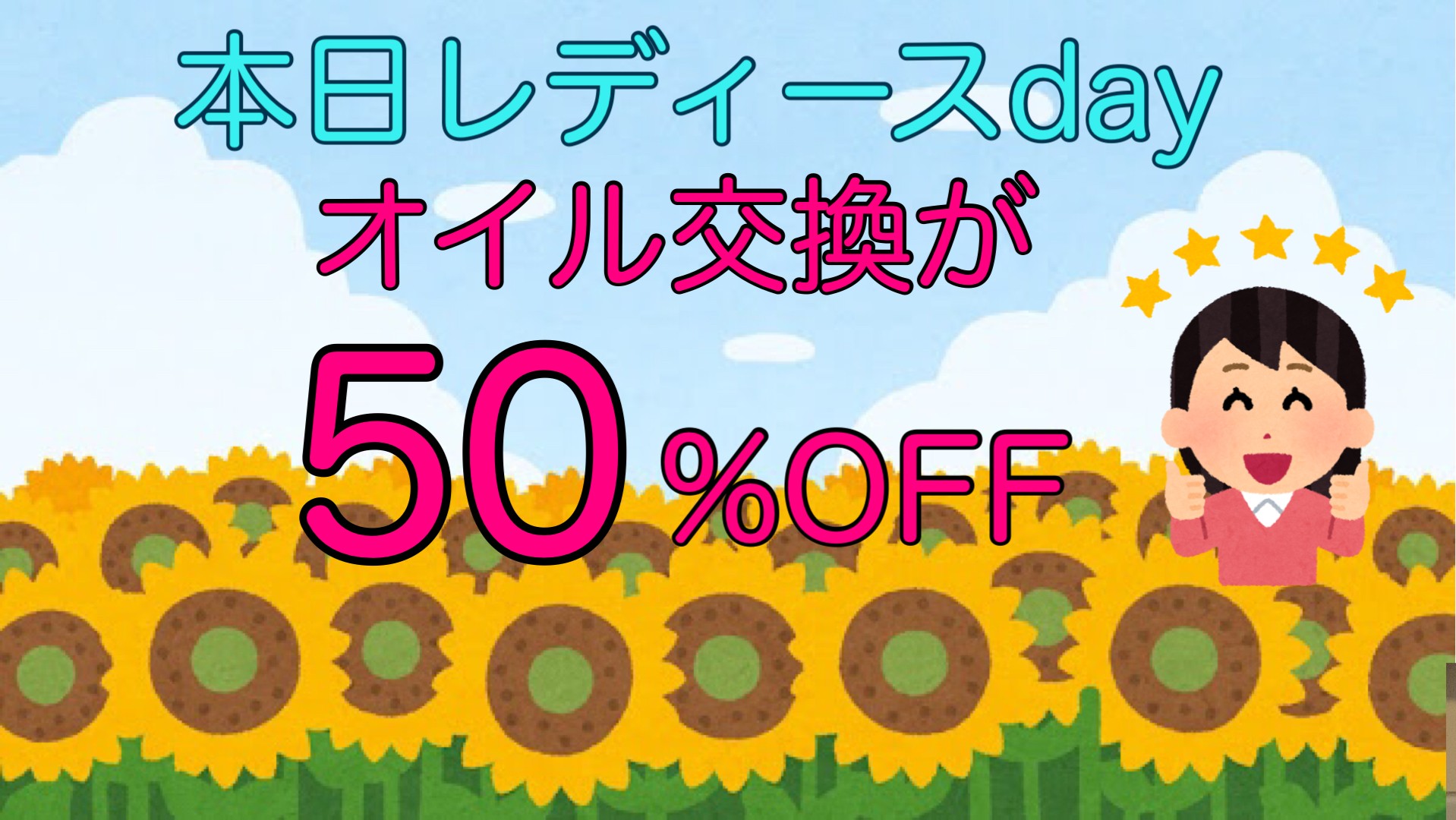 【本日、日曜日はレディースday★オイル交換50%OFF】【期間限定お買い得キャンペーン開催中】