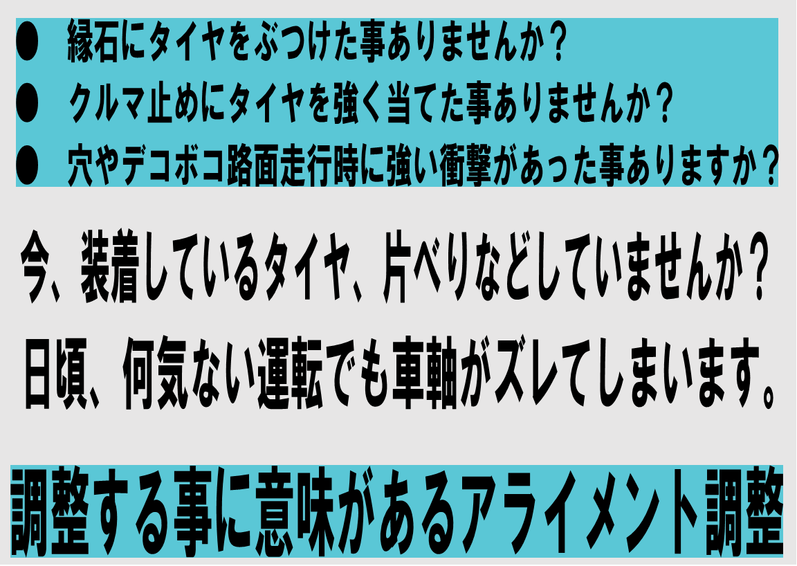 該当されない場合でも今まで一度もアライメント調整をした事がないお客様へ