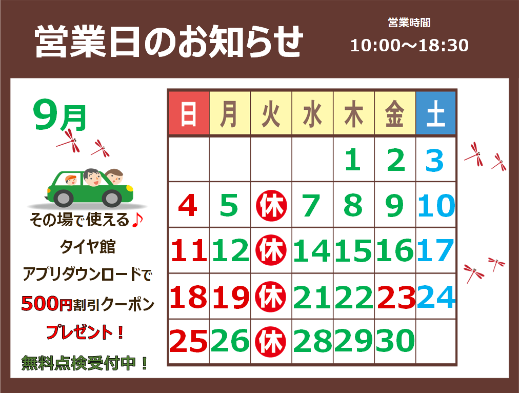 ★今月もよろしくお願い致します! ~9月営業日のお知らせ~