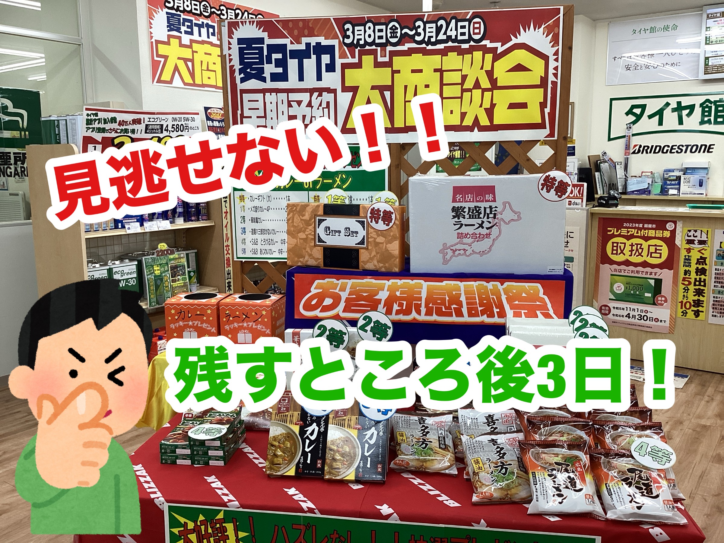 「夏タイヤ早期予約商談会」いよいよ残すところ後3日になりました!