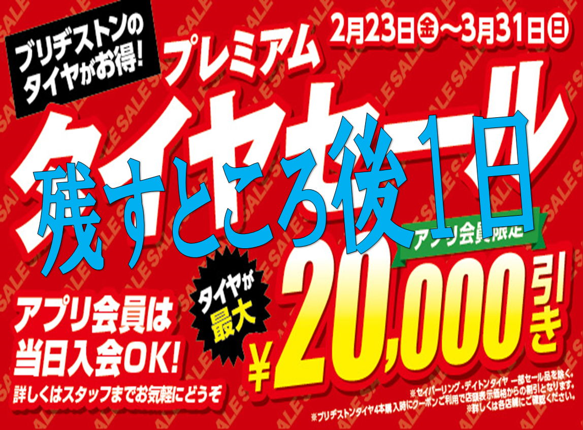 プレミアムタイヤセール開催中! 残すところ後1日★ 3/31(日)まで