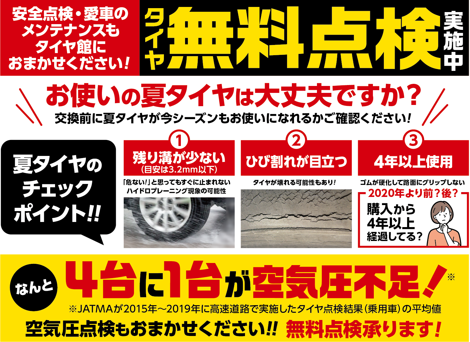 ご自宅でタイヤ交換をされたお客様も是非、空気圧点検へご来店くださいませ。