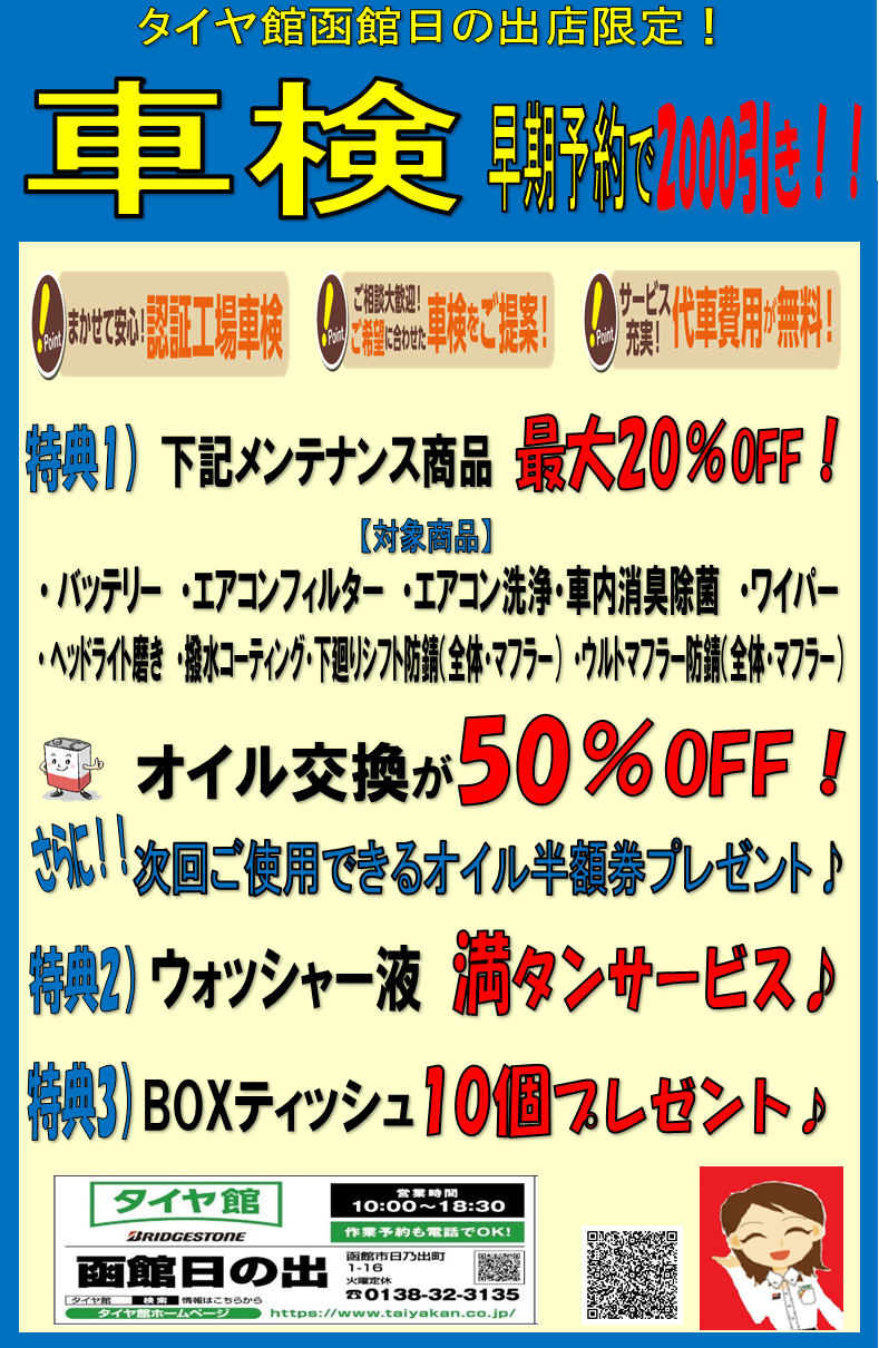 タイヤ館函館日の出店限定メンテナンス商品のご案内★
