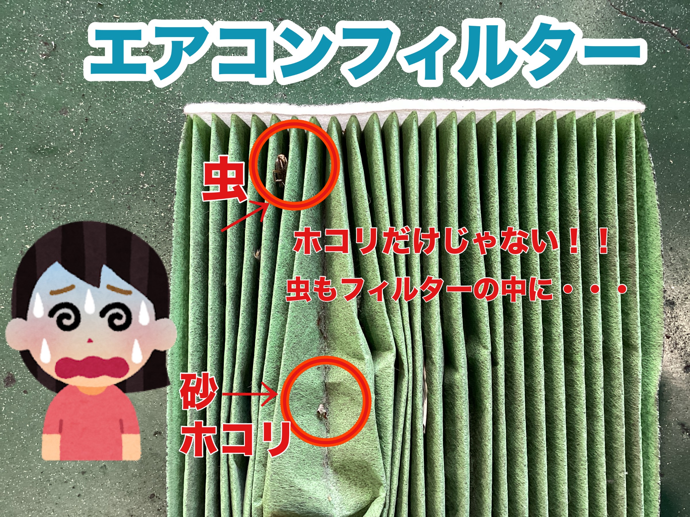 エアコンフィルターの汚れ方は、下記写真の様に虫も埋もれていることが多いです(>_<)