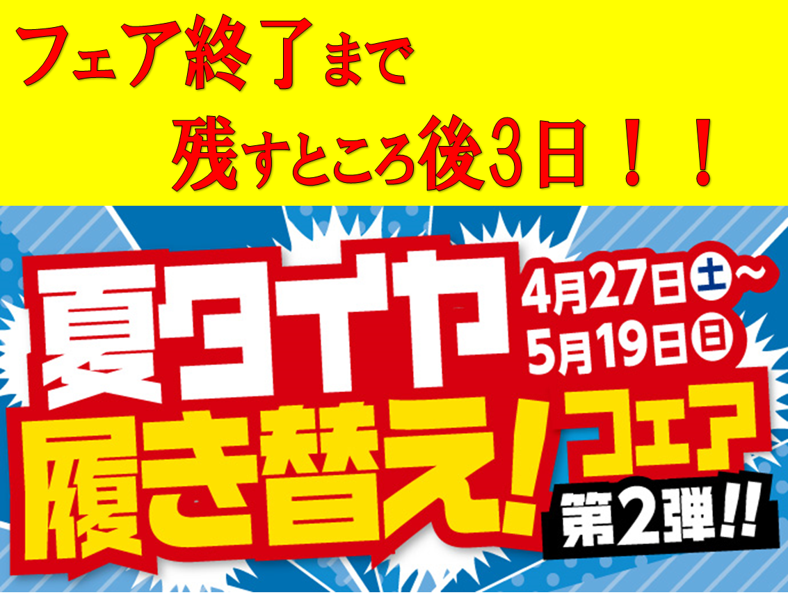 夏タイヤ履き替えフェア★残すところ後3日!!