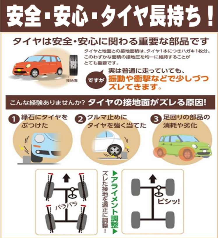 新品タイヤ+アライメントのご購入、誠にありがとうございます。