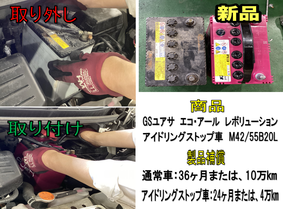 ダイハツ ムーヴ バッテリー交換 GSユアサ M42/55B20L