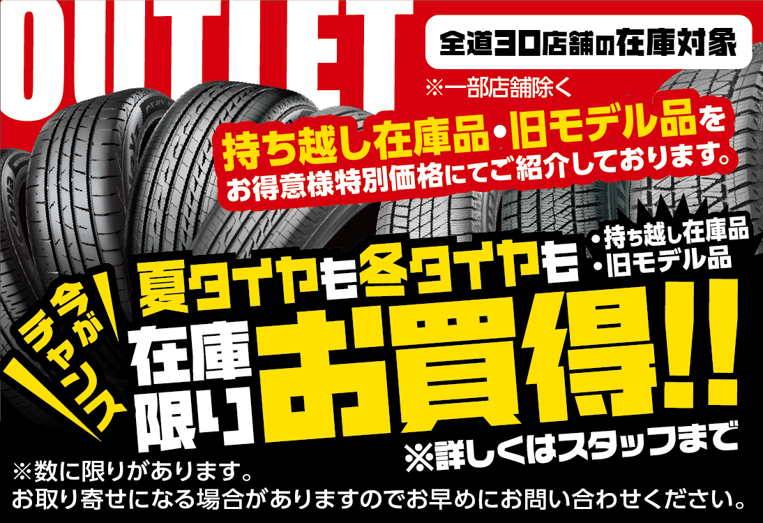 また、数量限定!! 夏タイヤ&冬タイヤのアウトレット品タイヤがございます。