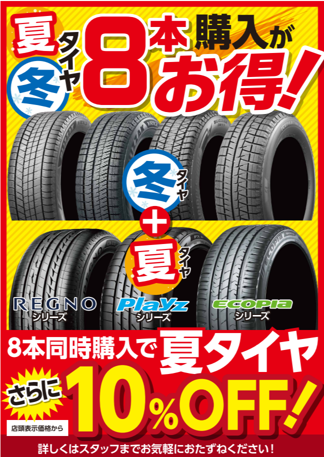 タイヤをはじめメンテナンス商品もお買い得満載♪