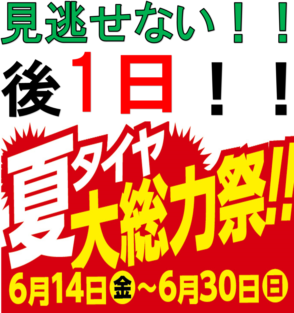 夏タイヤ 大総力祭開催中!! 残すところ後1日!!