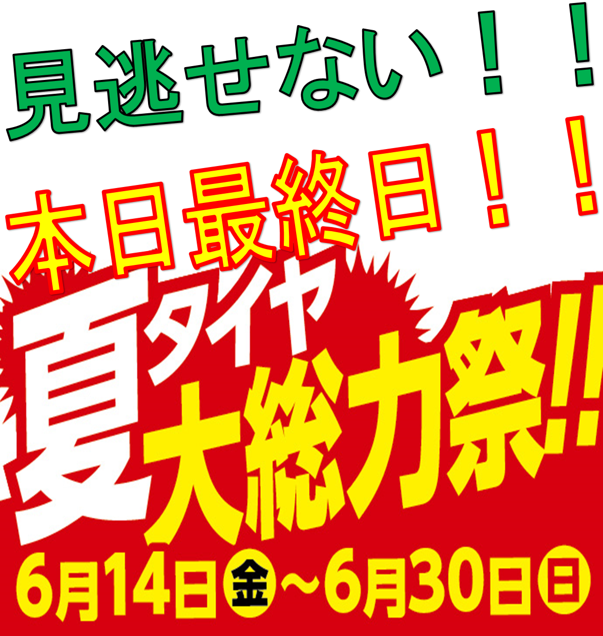 本日最終日!!夏タイヤ大総力祭★