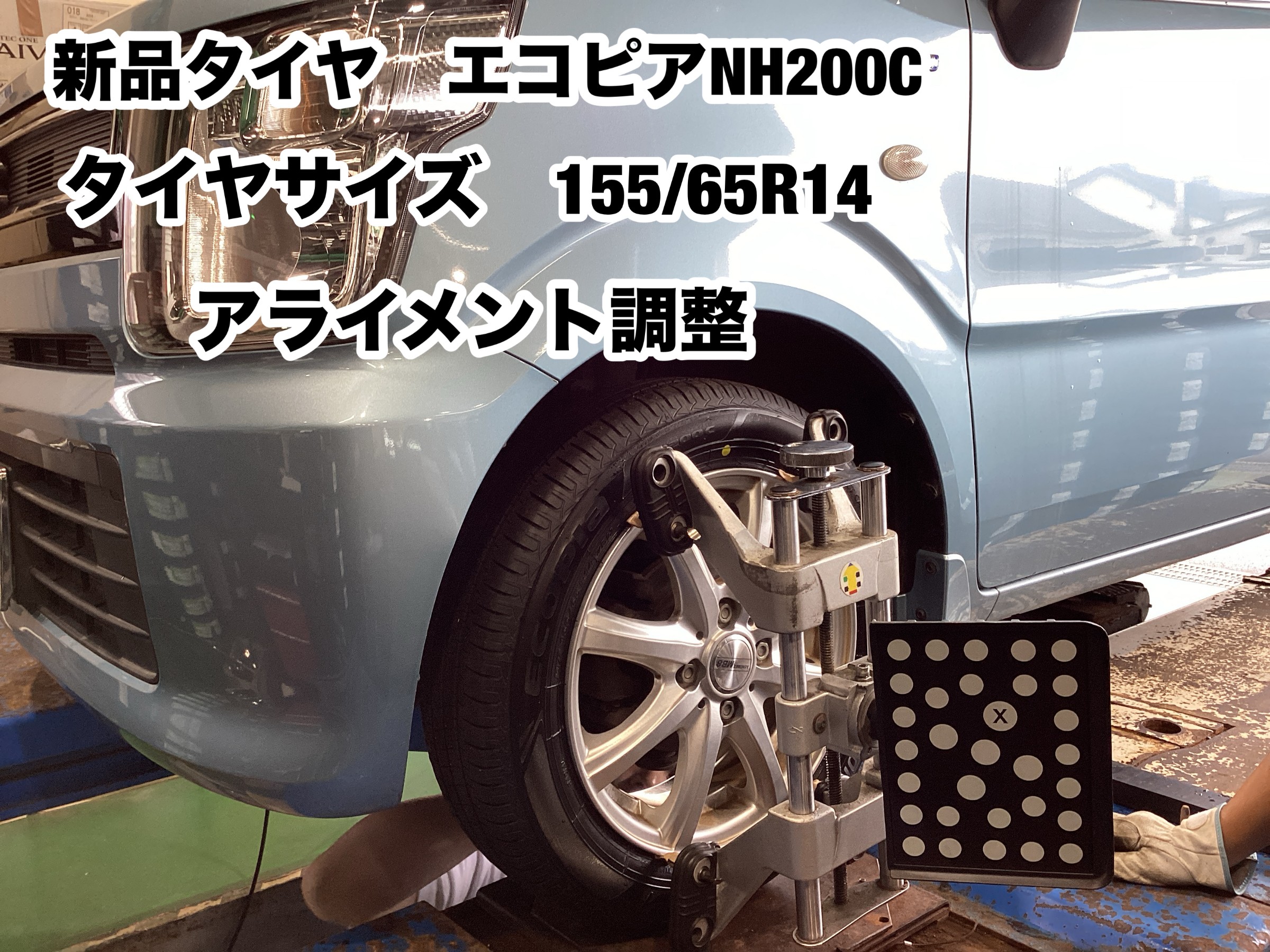 新品タイヤ エコピア NH200C 155/65R14+アライメント調整+ハブ防錆コーティング