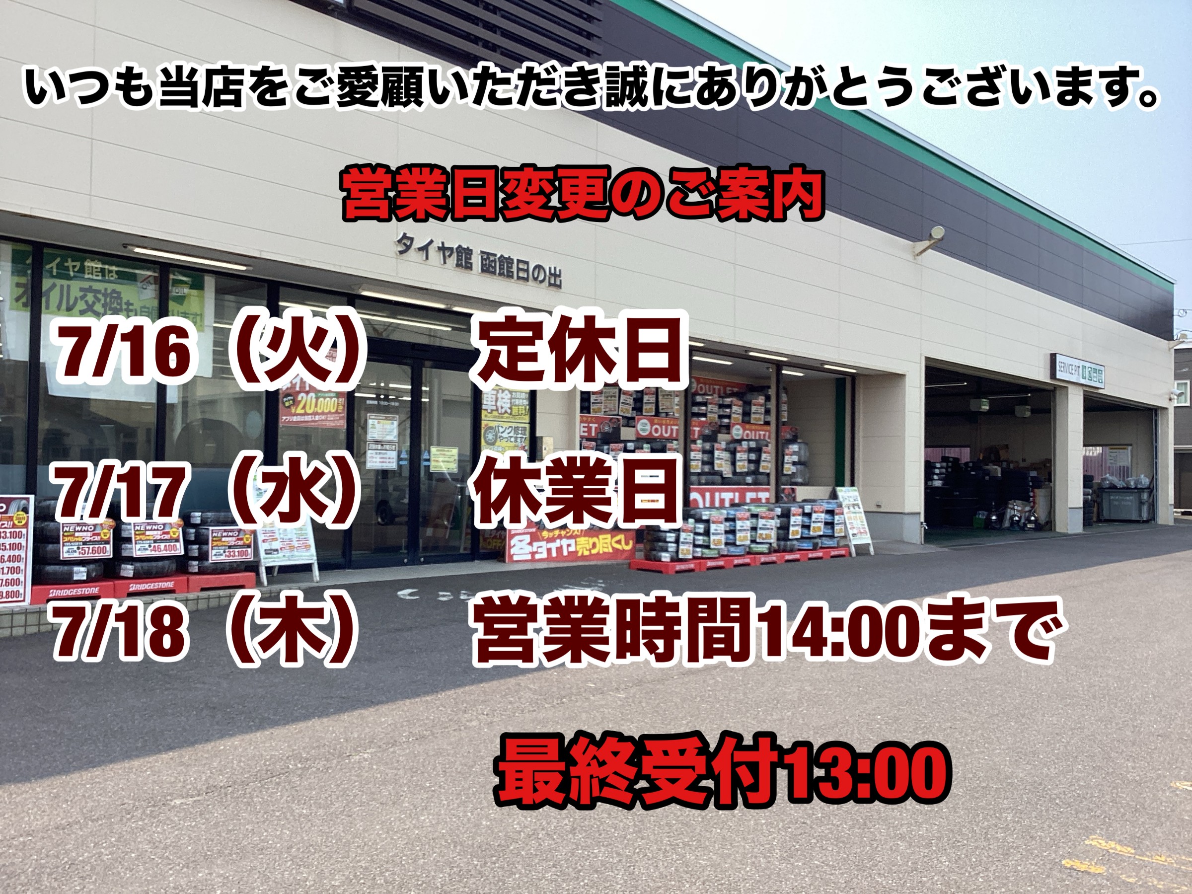 7/18(木)は、社内研修の為、最終受付が13:00までとなっております。