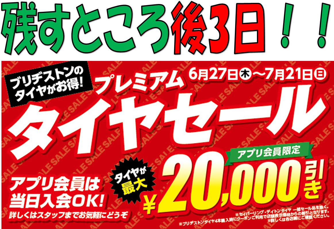 プレミアムタイヤセール開催中! 残すところ後3日