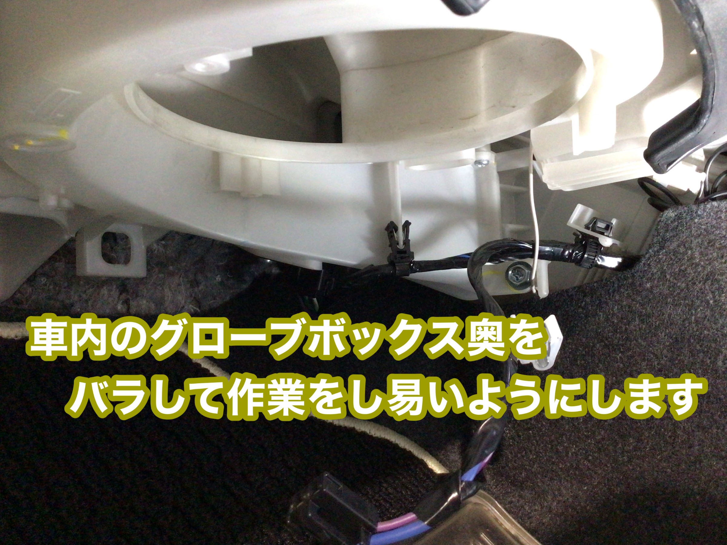 まずは洗浄する為に車内のグローブボックス付近をばらして作業をしやすいようにします。