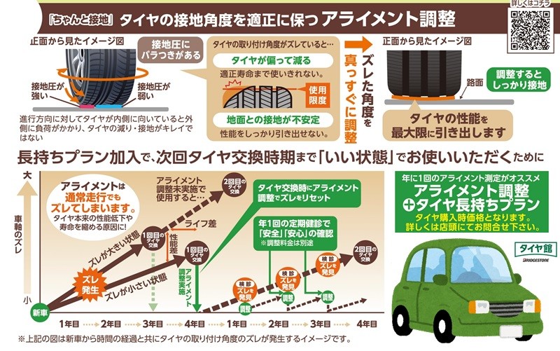 タイヤ交換、同時におススメしたいのがタイヤ長持ちアライメントです。