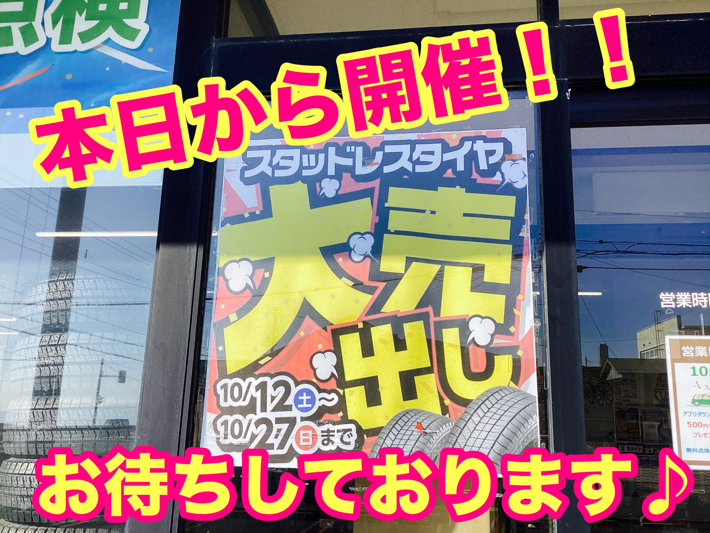 本日から開催!!「スタッドレスタイヤ大売出し」10/27(日)まで!!