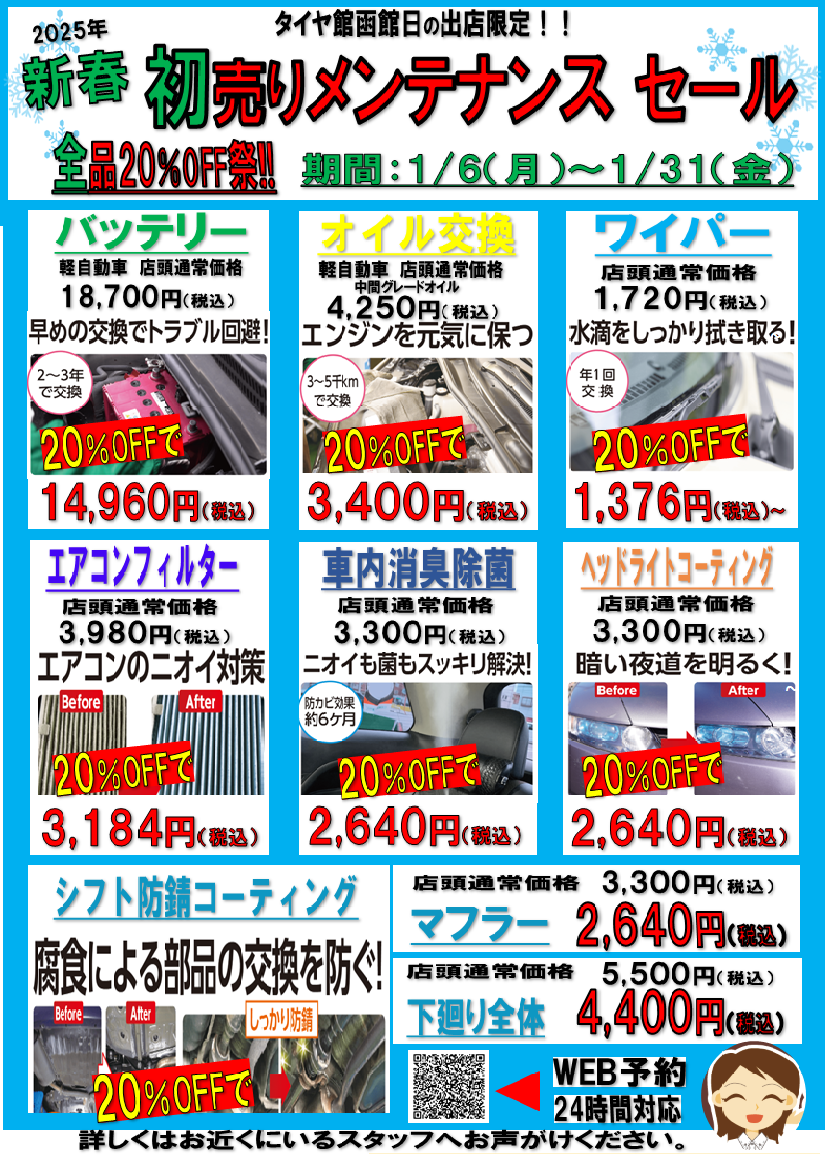 日の出店限定!初売りメンテナンスセール!1/31(金)までとなっております!