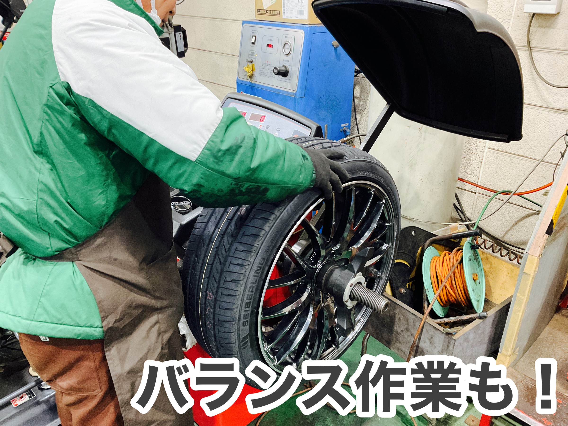 入れ替え作業後はバランス作業もおこないますよ!