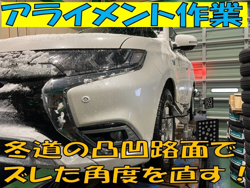 冬道の凸凹路面でズレた角度を直す!「アライメント作業」やってます!!