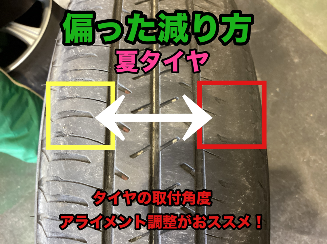 タイヤの取付角度がズレているとタイヤが偏って減ってしまいます!!