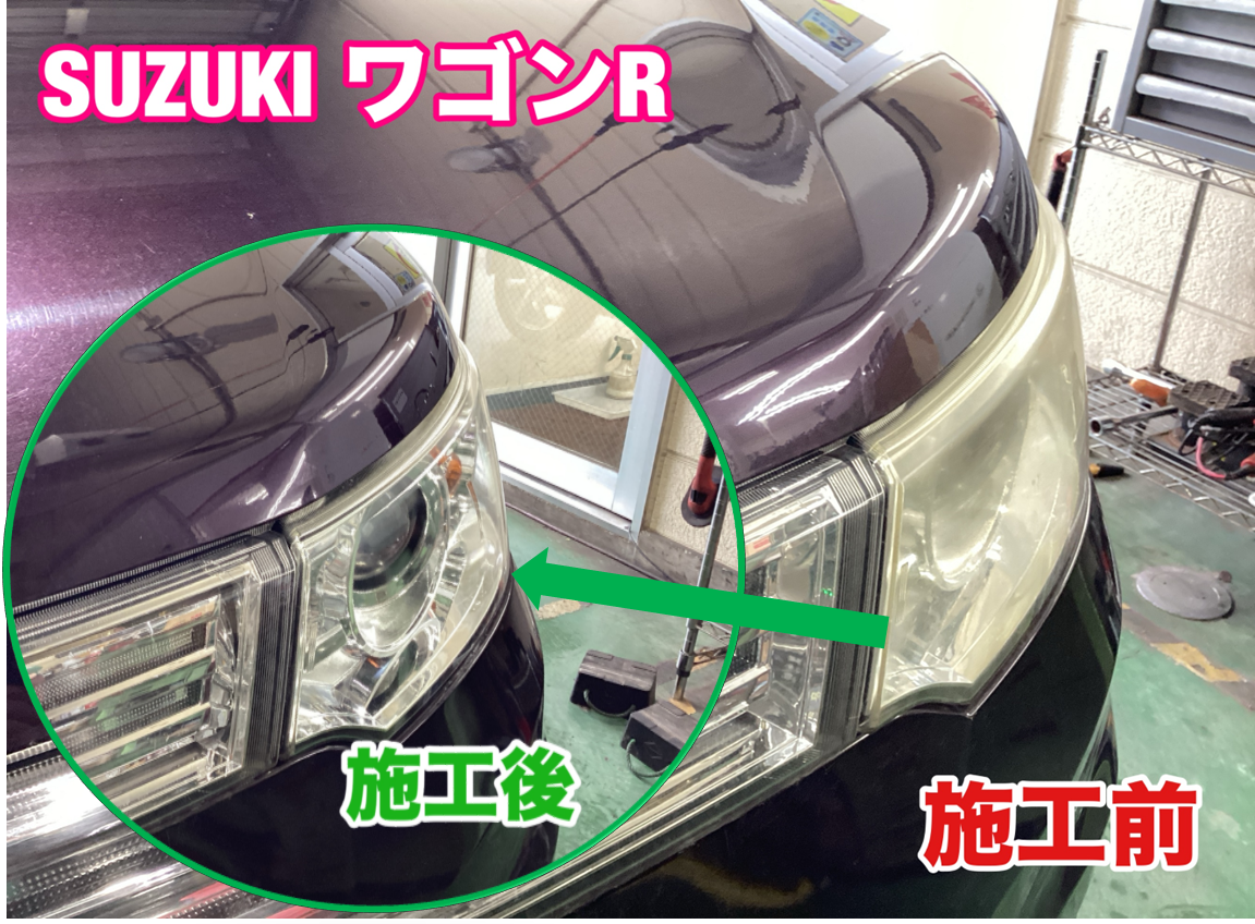 ヘッドライトのクスミ・黄ばみ解決!! 【スズキ ワゴR】ヘッドライトコーティング★