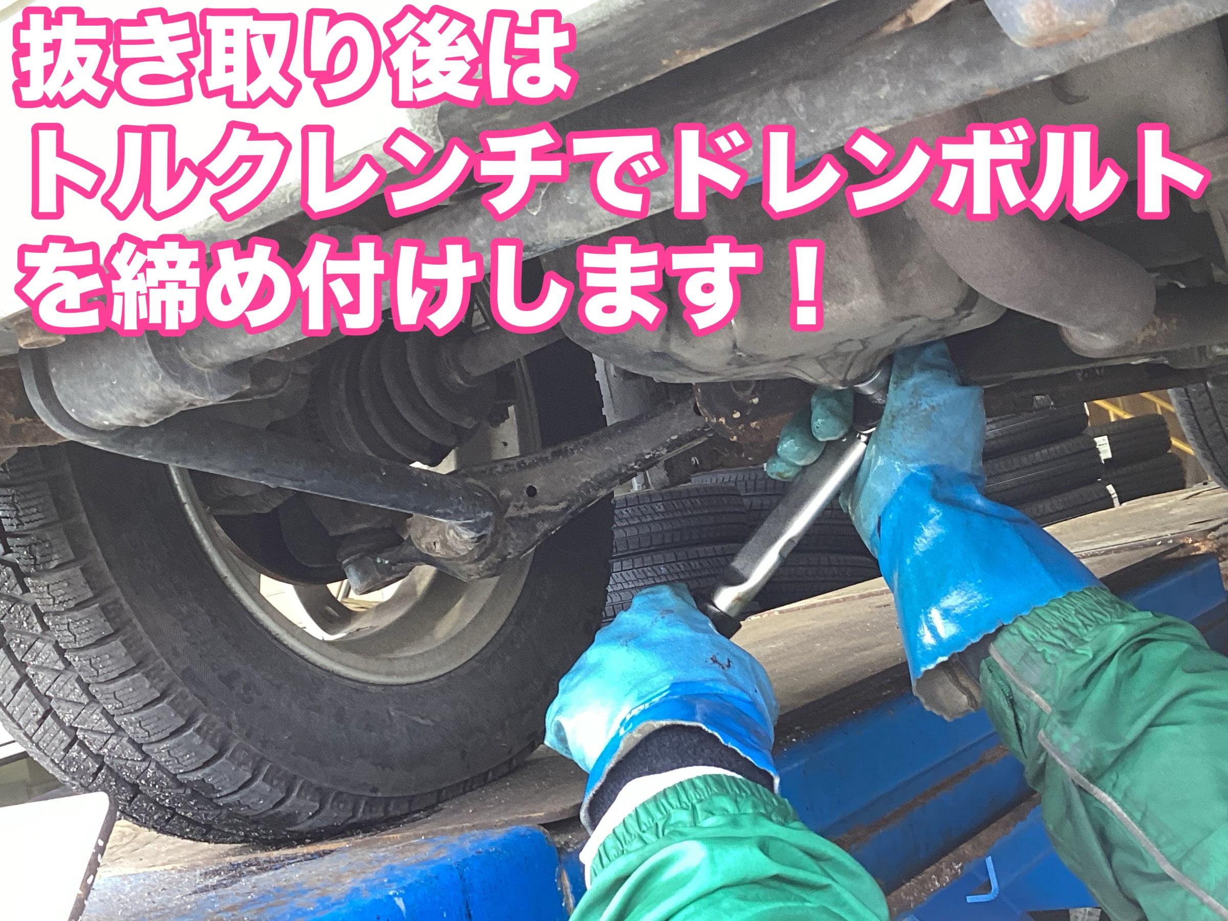 オイルを抜き取った後は、ドレンボルト・オイルエレメントを専用工具にて規定値で締め付けします!