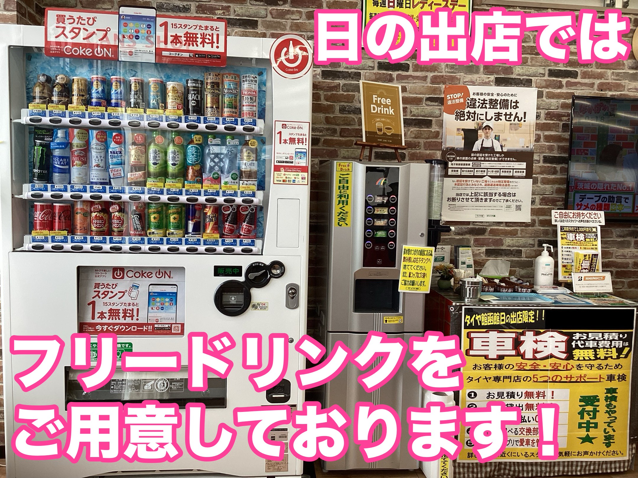 タイヤ館 函館日の出店 では自販機の他にフリードリンクをご用意しております!