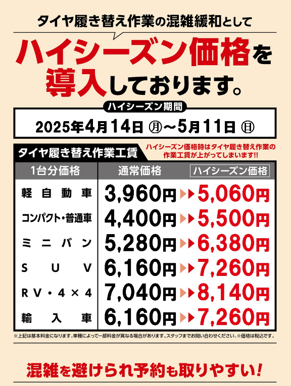 タイヤ交換は、金額が高くなる前に