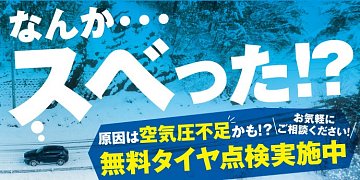 みなさん、こんにちは! いつもタイヤ館本通店、ご利用頂き、誠にありがとうございます\(^o^)/ 年末年始 雪降りましたね・・・・(-_-;) 路面の状況が一変しましたが今履いているタイヤで大丈夫ですか? 点検はいつでも無料です! 滑った!なんか滑る!怖い!などなど・・・・まずはタイヤの点検し...