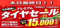 ☆本日最終日!!年内最後のプレミアムタイヤセール開催中!!