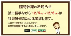 12/5(火)~12/6(水)は社員研修の為休業致します。
