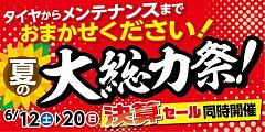 明日6月12日(土)から6月20日(日)まで 「夏の大総力祭」を開催致します 目玉はブリヂストン製お手頃タイヤ「DAYTON」 その他豊富なラインナップを取り揃えています 店頭に展示していないものもございますのでお気軽にスタッフへお尋ね下さい そして更にエンジンオイル交換やバッテリーなど...