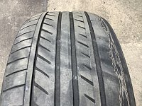 事故や縁石への乗り上げ 様々な要因で車の足回りの角度「アライメント」にズレが生じていきます 今回の画像は一例ですが決して他人事ではありません 皆様の車にも起こりえることなのでしっかり見て頂きたいです 片側だけ異常な減り方をしているのがおわかり頂けるでしょうか 製造年数は2020年、昨年...