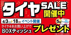 本日4月18日(日)をもって第2弾【集中得市】が終了となります タイヤをご検討のお客様、是非この機会にお立ち寄り下さい オイル交換などメンテナンス品もお得になっています ご来店をお待ちしております