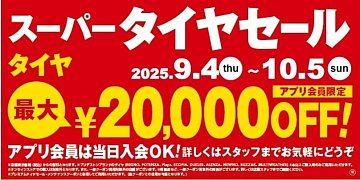 現在開催中!!【スーパータイヤセール】お得なタイヤクーポンも♪ 10/5(日)まで!