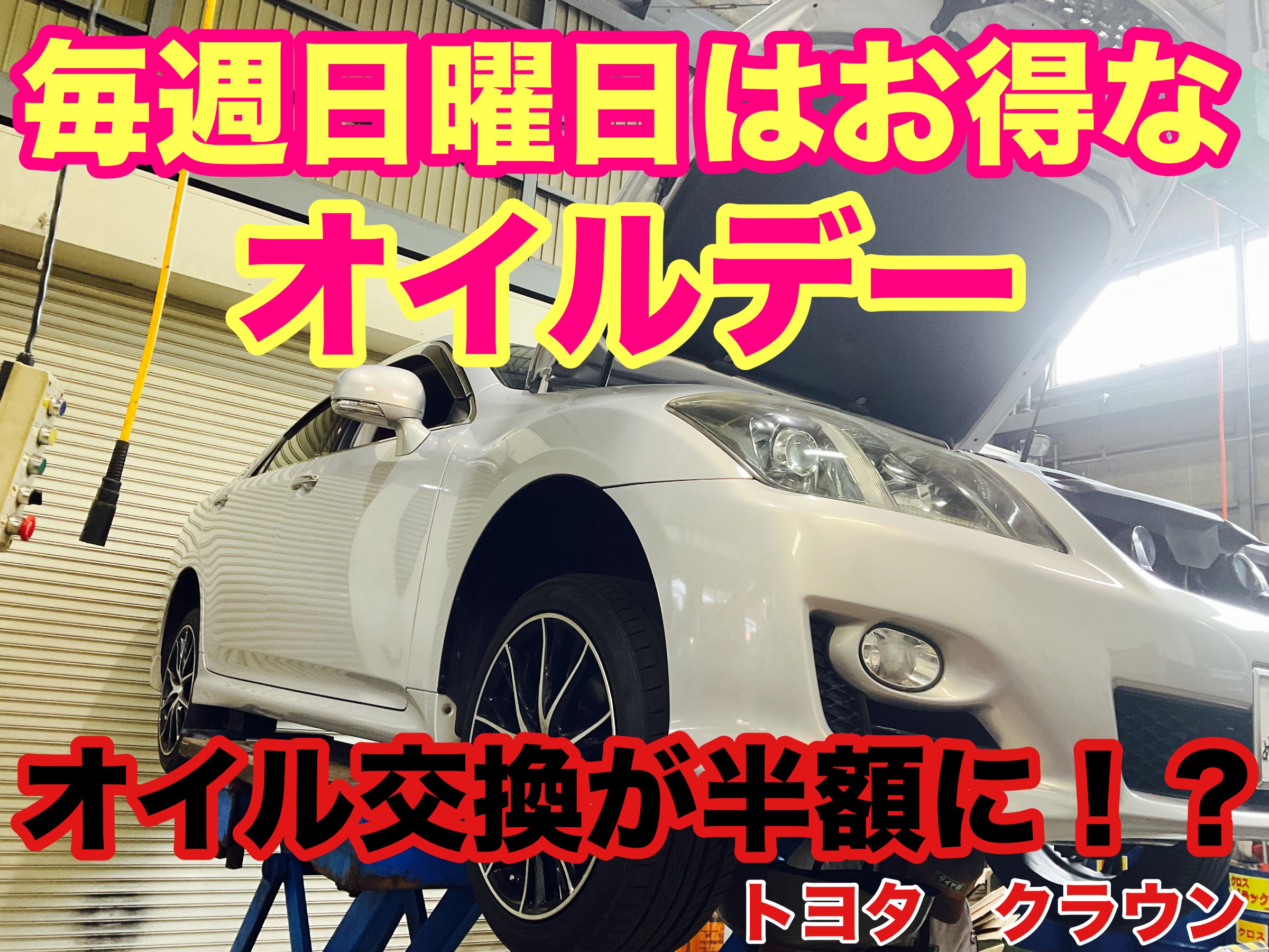 皆様、こんにちは!! いつも当店をご利用いただき誠にありがとうございます! お車の「オイル交換」はお済みですか?? 車のメンテナンスの中でも非常に重要な「オイル交換」ですが、 実は忘れがちなメンテナンスでもあります。 当店ではオイル交換のイベント日がございます!! 本日、日曜日は 「...