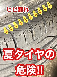 皆様、こんにちは! いつも当店をご利用いただき誠にありがとうございます! 今、履いている夏タイヤは大丈夫ですか?? こんな状態は要注意ですよ!! 〇3~4年以上使用している 〇ミゾが減っている 〇ヒビ割れ等がでている。 どれか一つでも当てはまる場合は交換が必要な状態かもしれません! ...