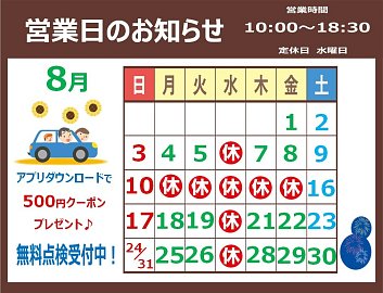 本日から8月スタート!! ~営業日・休業日のお知らせ~