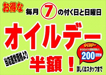 ★本通店名物イベント!!【毎月7のつく日・日曜日オイルデー】オイル交換は当店にお任せください!