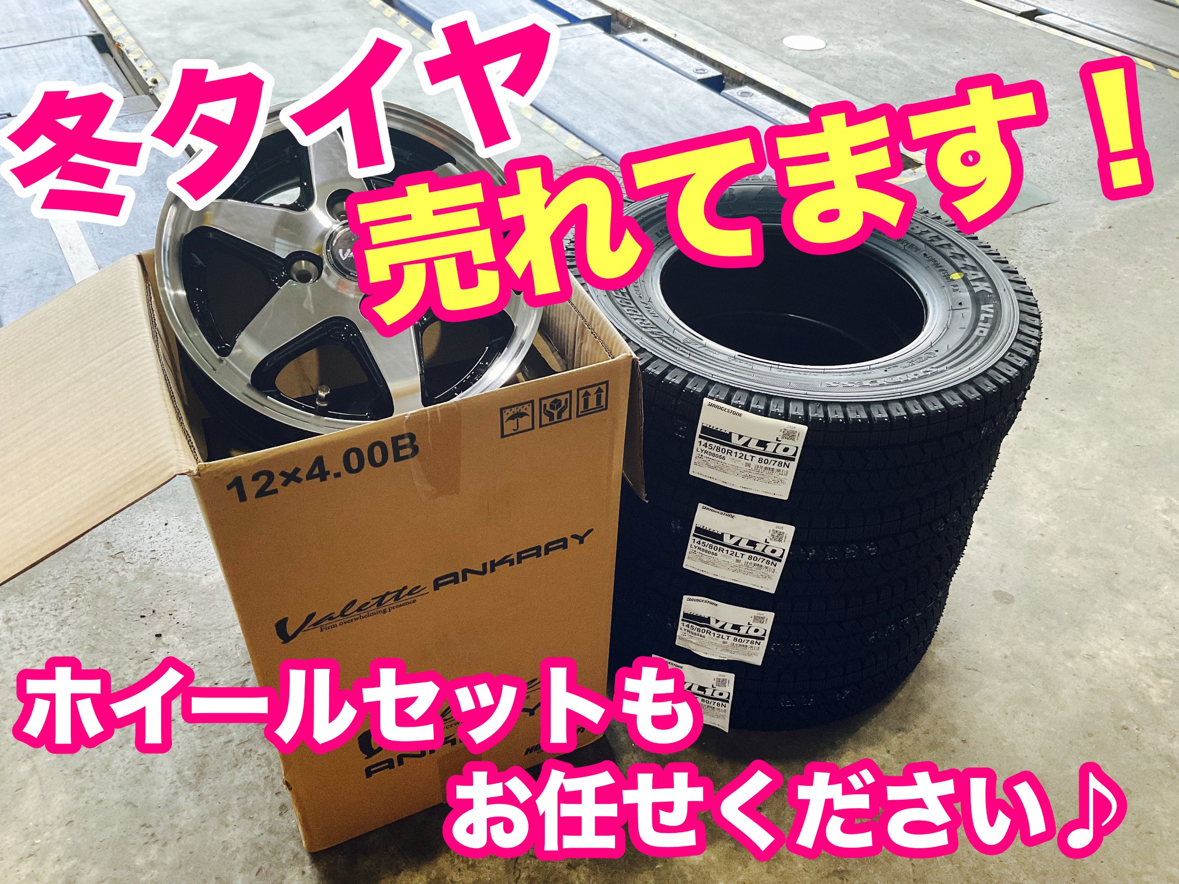 皆様、こんにちは! いつも当店をご利用いただき誠にありがとうございます! 今、お持ちの「冬タイヤ(スタッドレスタイヤ)」は大丈夫ですか?? 〇ご使用年数が3~4年以上経っている。 〇ミゾが減っている。 〇ヒビ割れ等がでている。 どれか一つでも当てはまっていると要注意ですよ!! また、...