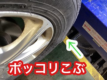 "ポッコリ”こんな「コブ」‼タイヤを整理する前に点検を!