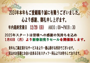 2024年本日、営業最終日‼ 今年も有難うございました。