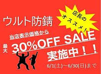 ☆錆から愛車を守ろう!☆ウルト防錆キャンペーン開催中!当店表示通常価格から30%OFF☆