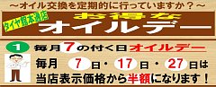 【開催予告】明日4/27(日)はオイルデー♪♪オイル交換が店頭表示価格から半額!!